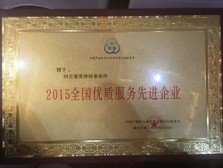 四川泰常律师事务所被授予“2015全国优质服务先进企业”
