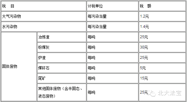 附表1:环境保护税税目税额表