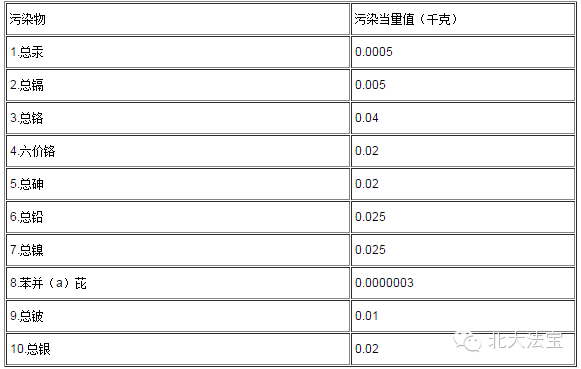 一、第一类水污染物污染当量值