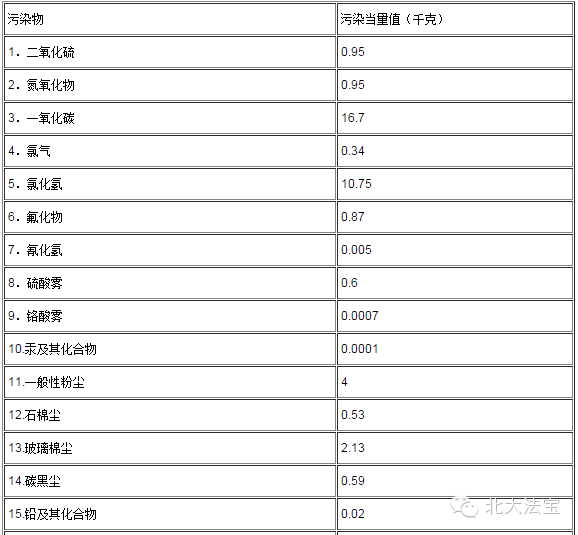 3.医院病床数大于20张的按本表计算污染当量。