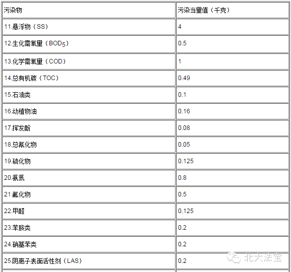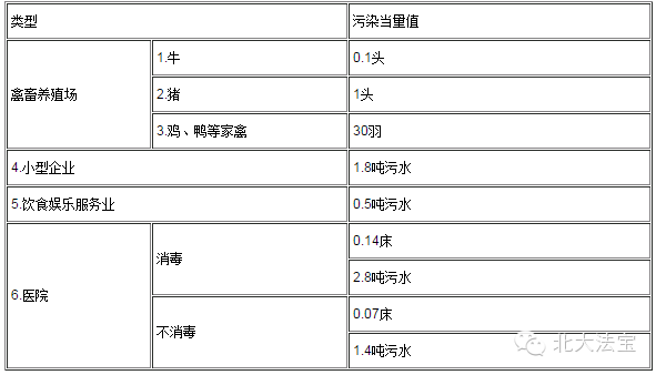 说明:1.本表仅适用于计算无法进行实际监测或物料衡算的禽畜养殖业、小型企业和第三产业等小型排污者的污染当量数。